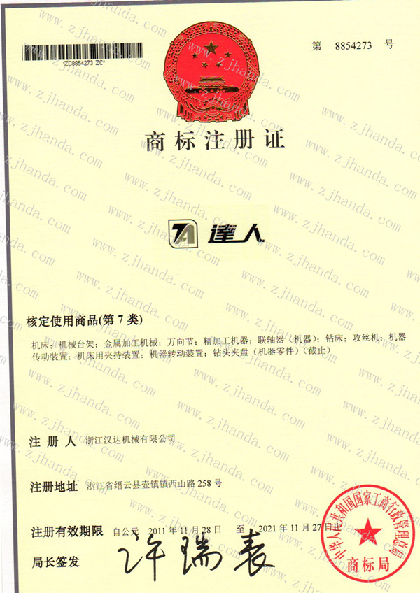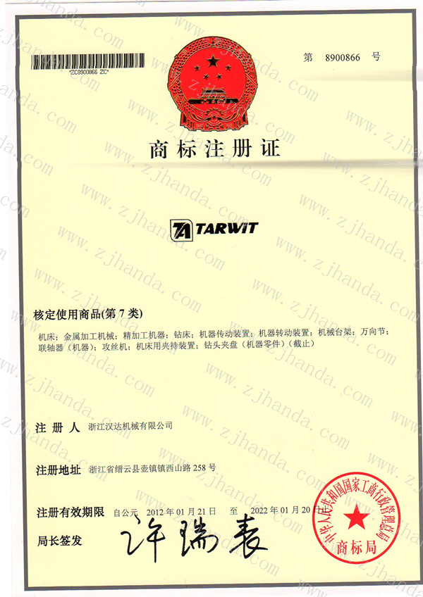 今天收到商標(biāo)局頒發(fā)的TARWIT達人商標(biāo)注冊證,有效期從2011年11月28日到2021年12月27日。