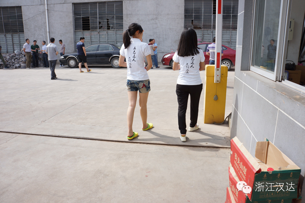 九點(diǎn)整,縣安監(jiān)局各企業(yè)陸續(xù)到達(dá)浙江漢達(dá),一時(shí)間竟造成交通擁堵。公司趕緊派了行政部?jī)纱髱浉缭诼房谥笓]交通,臨時(shí)從營(yíng)銷中心“借用”的兩位美女則在門口協(xié)助引導(dǎo),并及時(shí)送上礦泉水。